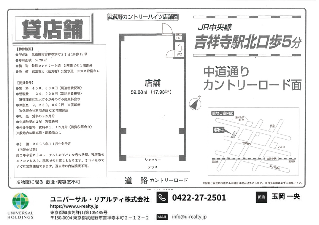 『吉祥寺の店舗・テナント・事務所は、ユニバーサル リアルティ株式会社にお任せください。』