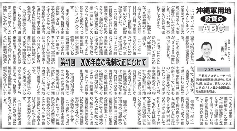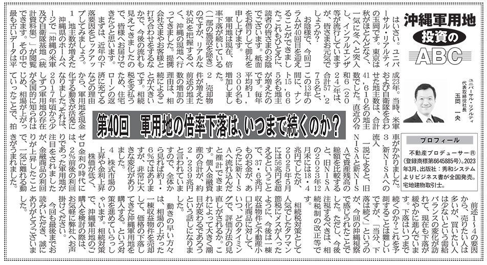 週刊不動産経営『沖縄軍用地投資のABC』