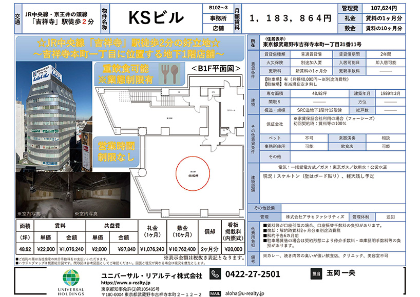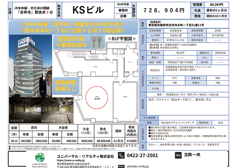 『吉祥寺の店舗・テナント・事務所は、ユニバーサル リアルティ株式会社にお任せください。』