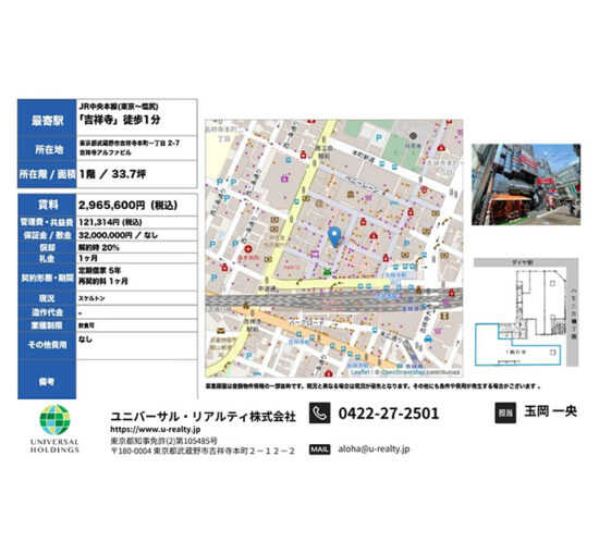 吉祥寺トップクラス!視認性の高い角地【飲食可能】