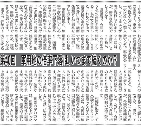 【連載第40回】軍用地の倍率下落は、いつまで続くのか?